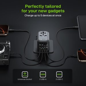 EPICKA Pulse 45W European Travel Plug Adapter, Universal Power Adapter with PD Fast Charging, 5-Port (1 AC/2 USB-A/2 USB-C) International Charger Adapter for Europe, Japan – Travel Essentials (Black)